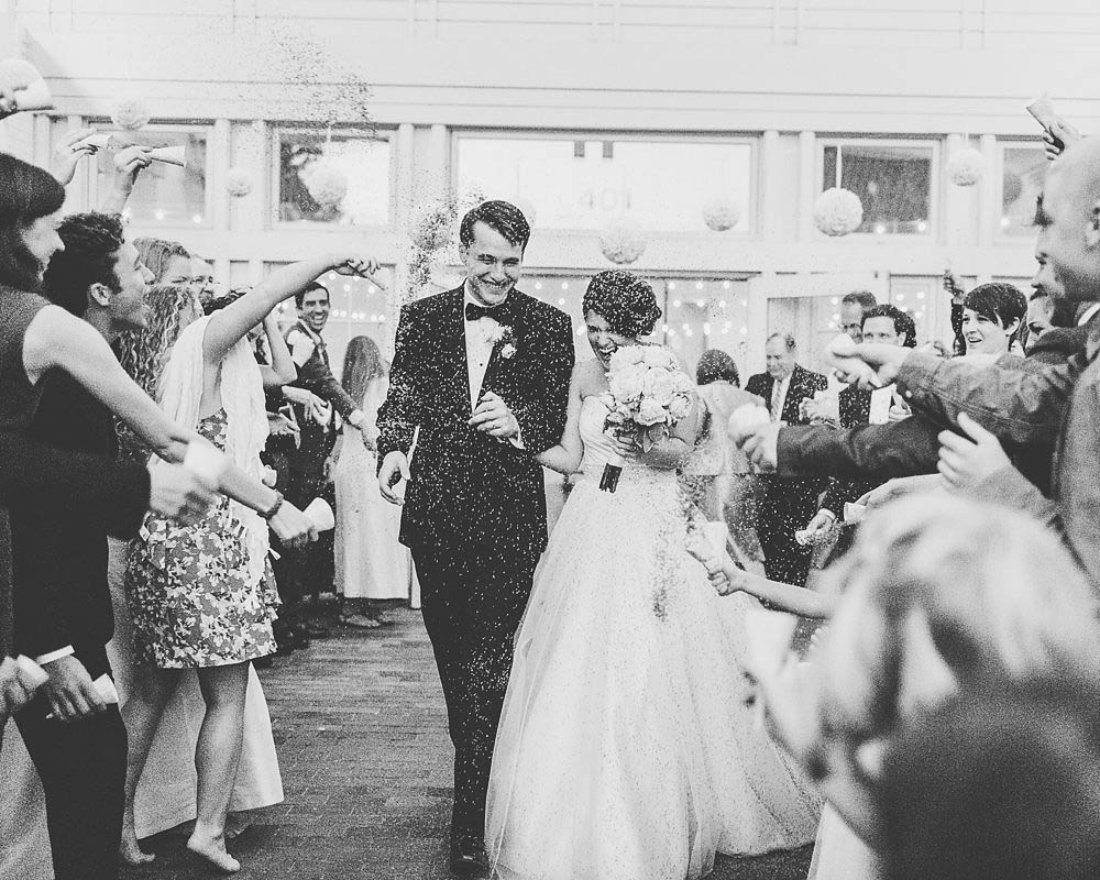 What a beautiful set of images. I love the black and white of the bride and groom exiting. Such a classic photo.